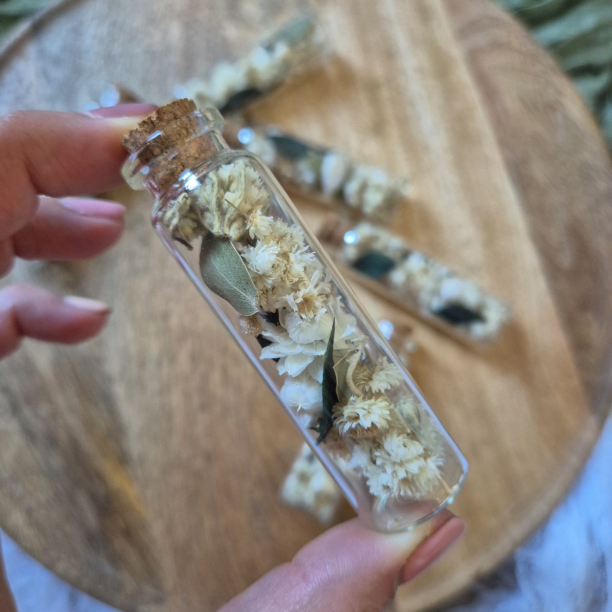 7 cm hosszú, üveg fiola a választott színvilágotokban, akár feliratozva is.