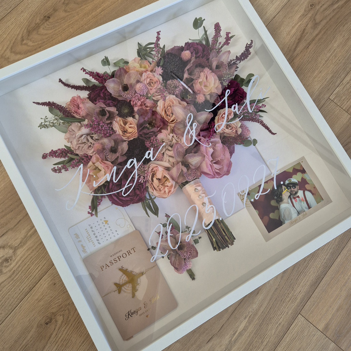 Menyasszonyi csokor megörökítés 50×50 cm keretbe