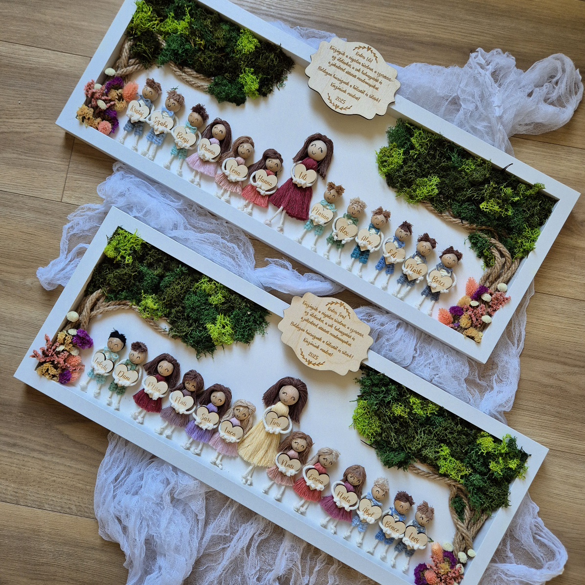 Minden esetben a keret méretét, a fa méretét és minden egyebet a megadott létszámhoz igazítjuk. Bármilyen egyedi kérést kérlek megjegyzésbe írj bele a rendeléskor, vagy küldd el külön üzenetben. (Ruhák, hajak színe, nevek, szöveg, virágok színe, szemüveg, stb).